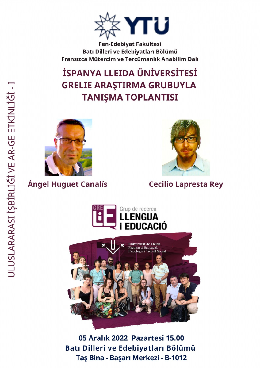 Uluslararası İşbirliği ve Ar-Ge Etkinliklerimiz kapsamında, İspanya Lleida Üniversitesi'nden GRELIE Araştırma Grubunu Bölümümüzde ağırlanmıştır.